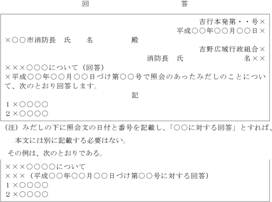 (19) 回答 問い合わせに対して、一定の事項を知らせること。
